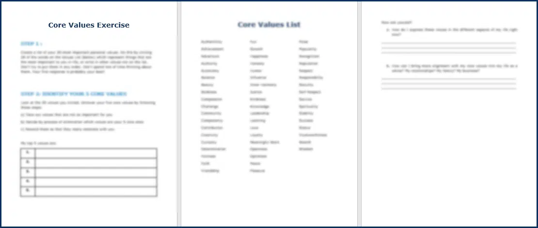 - Core Values Exercise โ Use together with the Action Guide to narrow down your core values