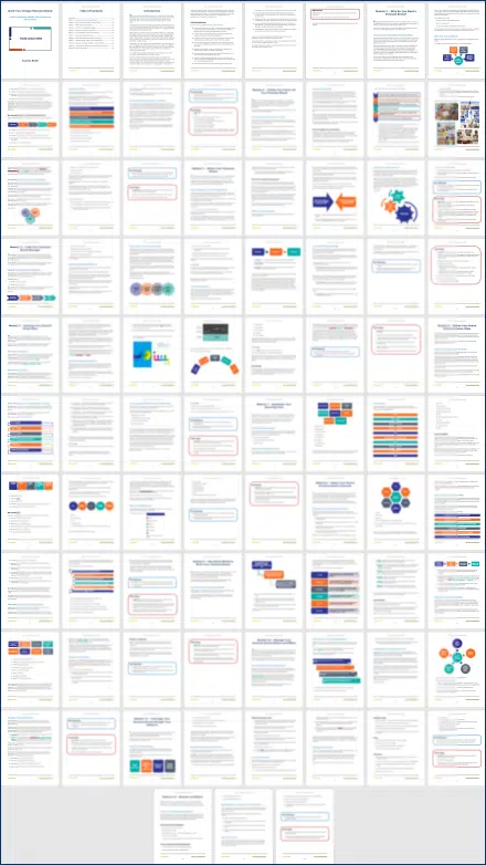So you donโt have to spend months to research the topic, narrow down the key points, outline a logical flow, design learning activities, write all the content, develop worksheets and checklists, create the slideshow, design graphics, edit and proofread everything, and make it look professional.