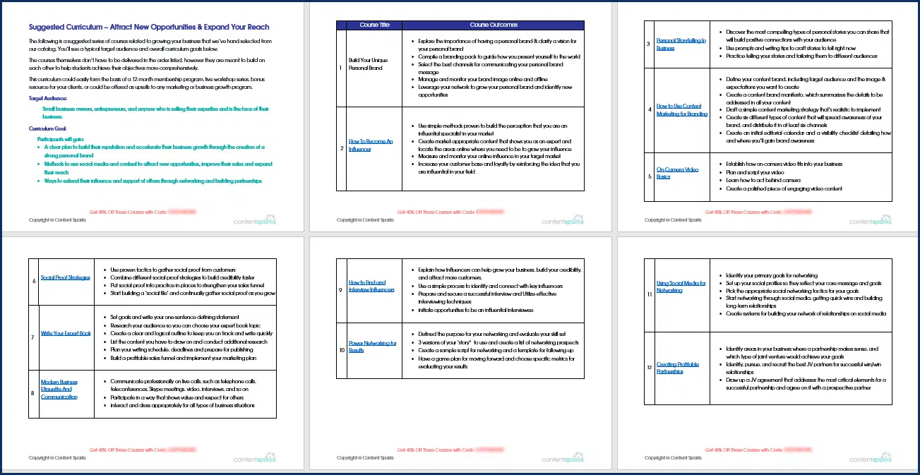 - Suggested Curriculum – We've hand-picked 12 topics from our catalog that you can use to put together a longer series or membership site (plus a coupon for 40% off each!)