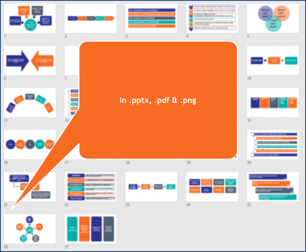 Contents are delivered as .docx, pptx and .xls. Images are .pptx, .pdf & .png.