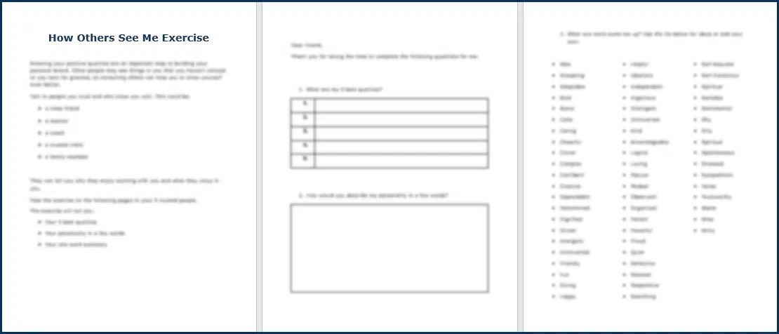- How Others See Me Exercise โ Use together with the Action Guide to find out how others see you in the world.